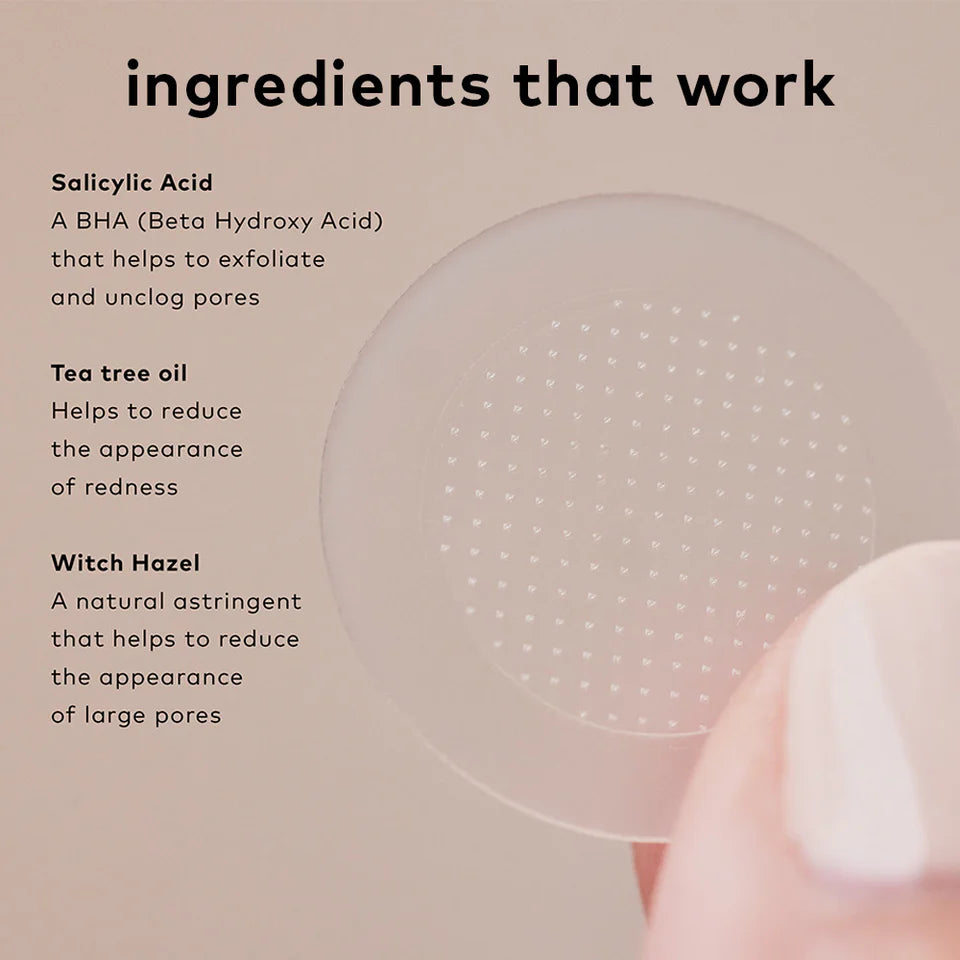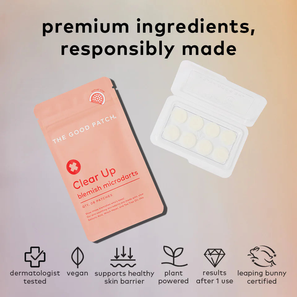 Microdart patches to help soothe pesky blemishes. Infused with Salicylic Acid, Witch Hazel, and Tea Tree Oil. Perfect for that time of the month or any other time a blemish dares to surface on your face.